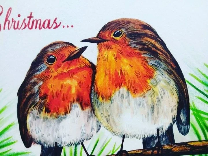 This ink drawing of two Robin Redbreasts is a particularly special picture… I drew this as a hand-made Christmas card and gave it to my wife, who at the time was my girlfriend. This would be her first time celebrating Christmas as she comes from Northern Vietnam, where they mostly do not celebrate Christmas.