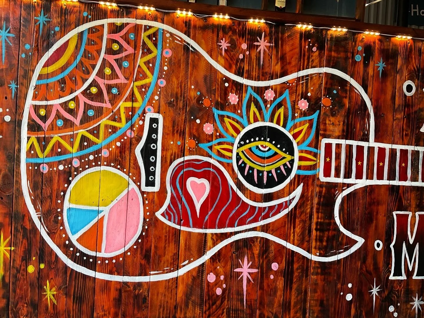 MURALS RICK & MORTY RIDE AGAIN D'MYNA BINH'S MOTORCYCLE'S BAR FRONT THE LITTLE LEAF POD HOSTEL IT'S A SMALL WORLD THE GREAT LION'S WALL FAIRIES PLAY FLUTES