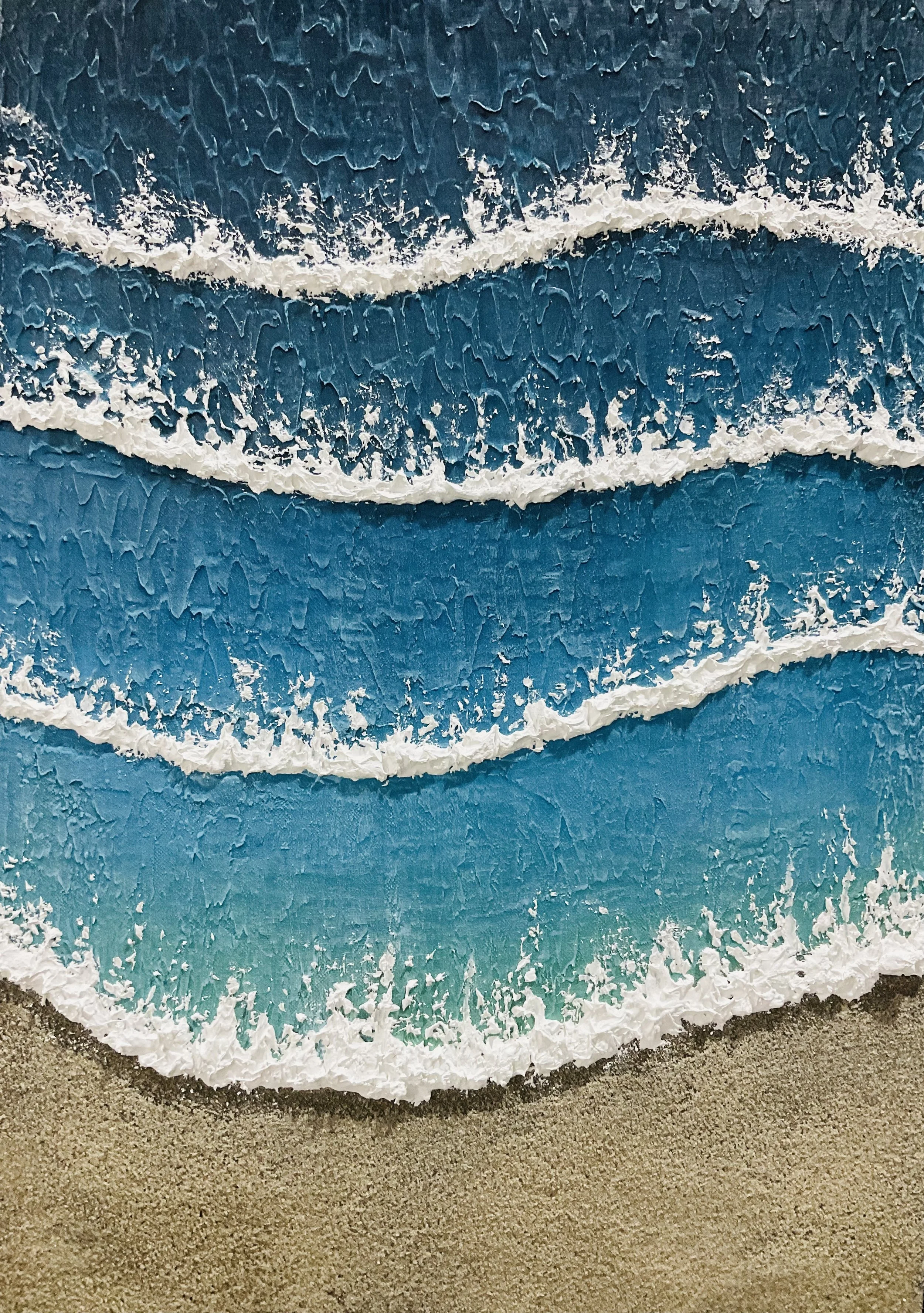 I was so fond of my walks and coffee stops that I was inspired to create a textured painting portraying the rolling waves and smooth sands of our beloved beach, using real South Shields sand. (Which I later found out is not strictly legal…) Furthermore, I found Sea Change Cafe to be such an inspiration, that I felt compelled to name the piece after it and then donate it to them.